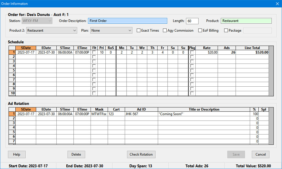 We've started work on a new program: Airtime Traffic, a complete scheduling and billing system with affordable pricing for smaller operations with a limited budget.